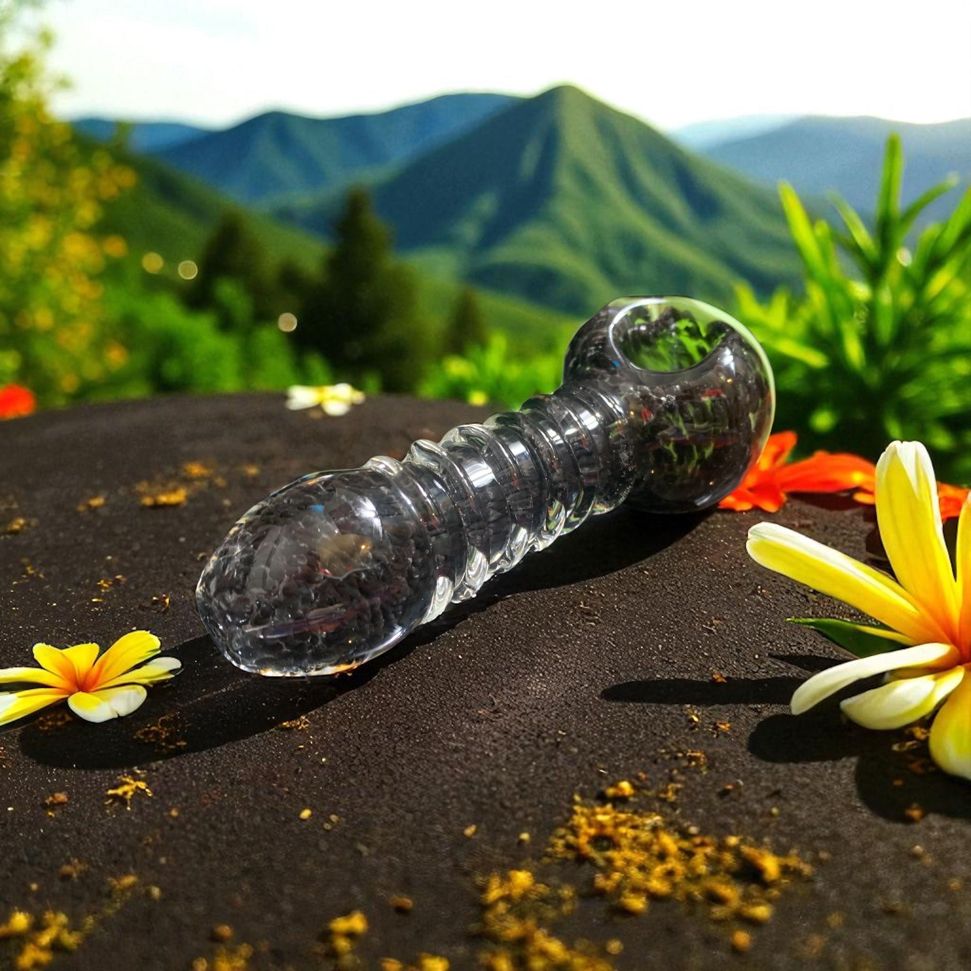 The Obsidian Dior embodies refinement in its purest form. With a ridged, sculptural body crafted from flawless clear glass, it channels the timeless strength of obsidian while shimmering with crystalline brilliance. This piece is not just glass — it is an art object, a symbol of luxury, and an expression of elevated taste.