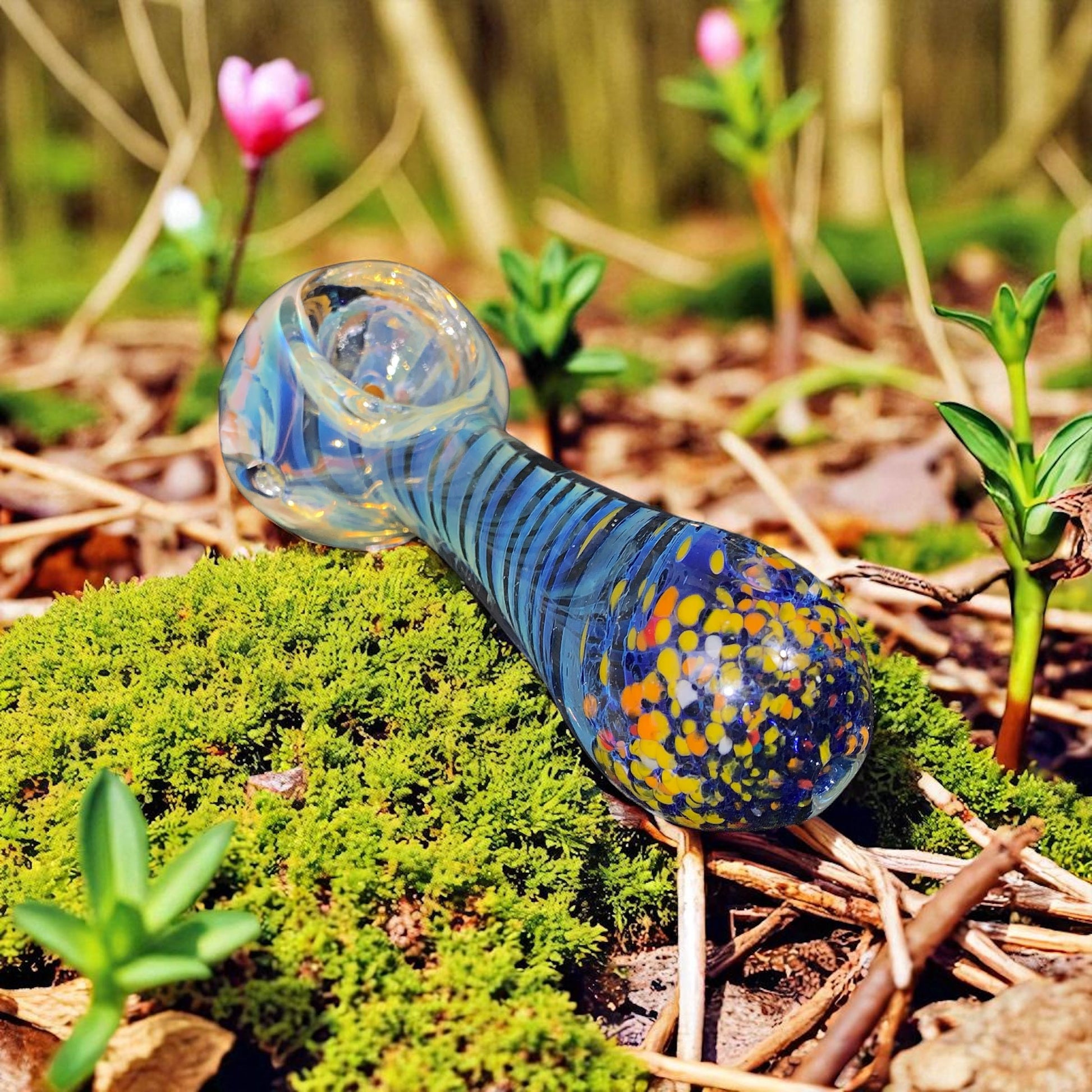 Hand-crafted borosilicate glass with sapphire and gold accents
